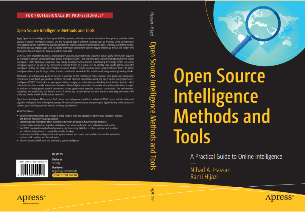 Open Source Intelligence Methods and Tools, focuses on building a deep understanding on how to exploit Open source intelligence (OSINT) methods and tools to acquire information from publicly available online sources to support intelligence analysis. The harvested data can be used in different scenarios like financial, crime, terrorism investigations in addition to the regular tasks like business competitor analysis, background check and acquiring intelligence about individuals and other entities. This book will also improve anyone skills to acquire information online from surface web, deep web and the darknet.